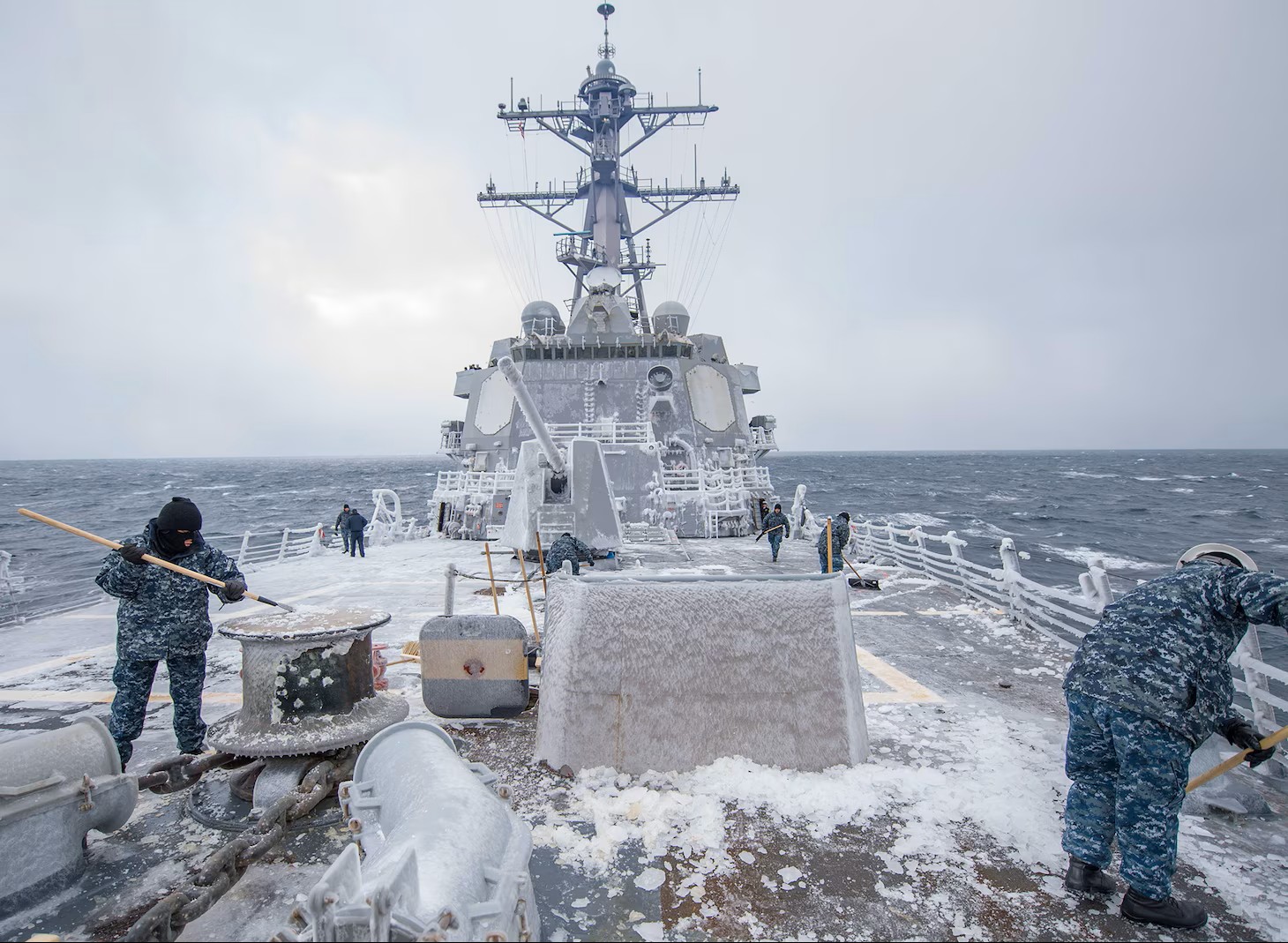 USS McCampbell (DDG 85) covered in ice